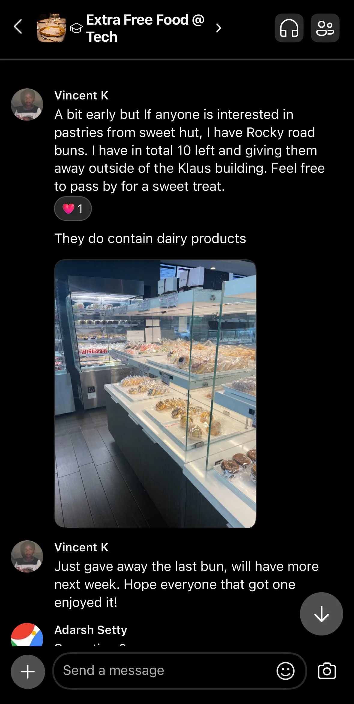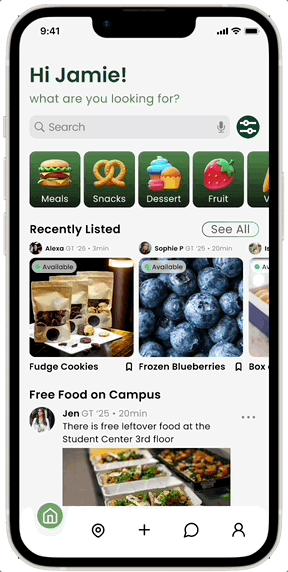 Discover free food on campus—whether through individual student listings or real-time updates on food around campus. Easily connect with others to share and enjoy.