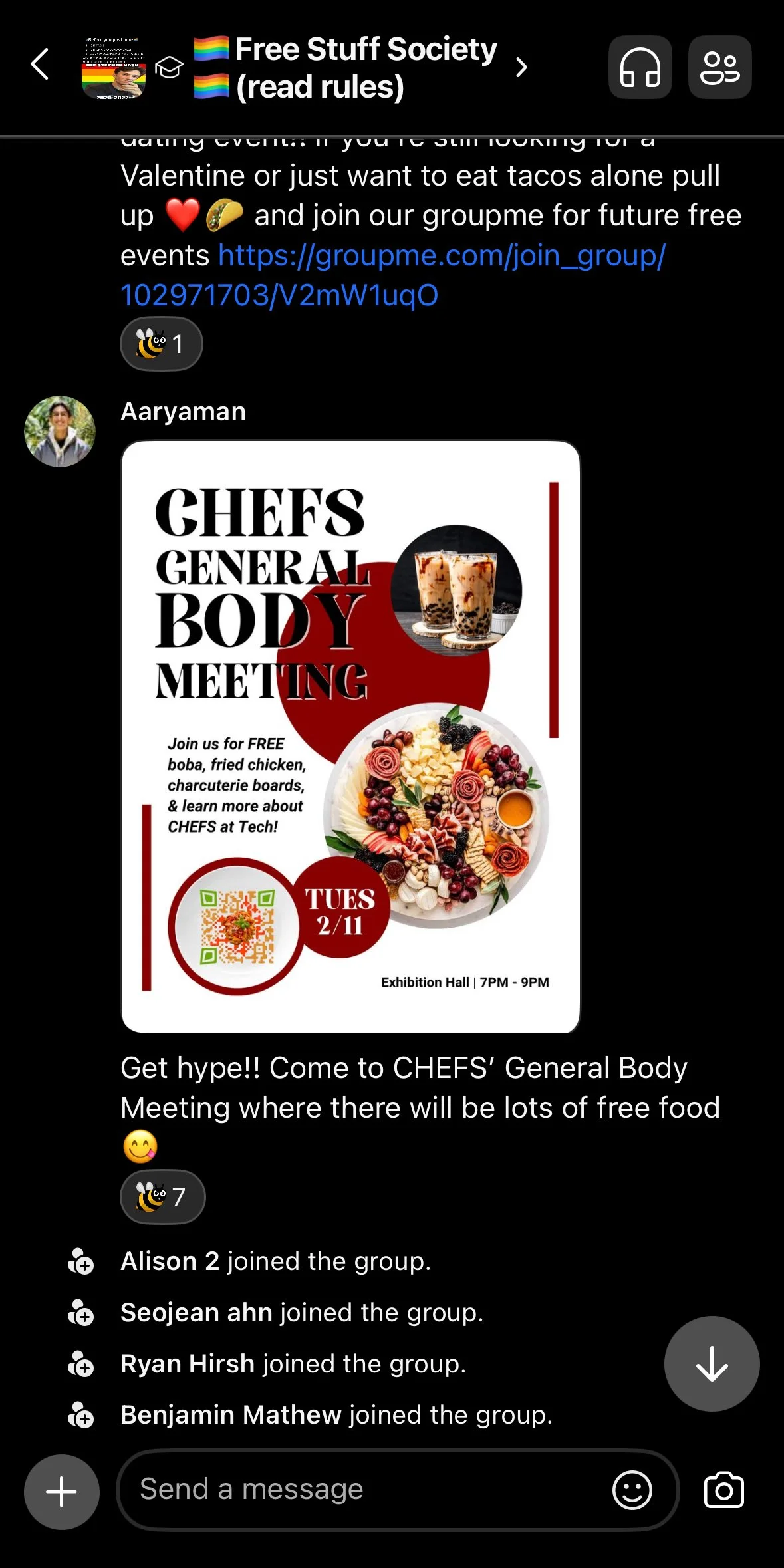 There is a GroupMe chat for sharing information about free food on campus, with over 5,000 members. This chat allows students to quickly learn about available free food from events, meetings, and leftover campus meals. The chat is a popular resource for students looking to find meals and snacks.