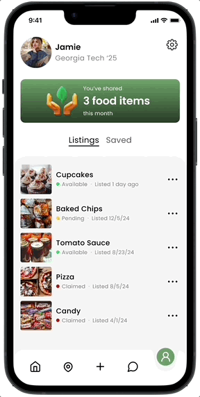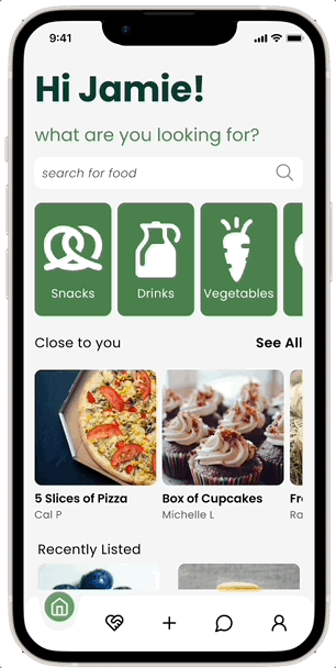 A mobile app that promotes sustainable food sharing among college students, tackling both the problems of food waste and food insecurity.