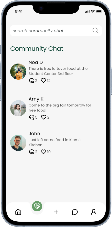 Users wanted a dedicated space on the app to view real-time updates about free food on campus, addressing their immediate need for accessible food resources. As a result, we replaced the Goals tab with a Community tab.